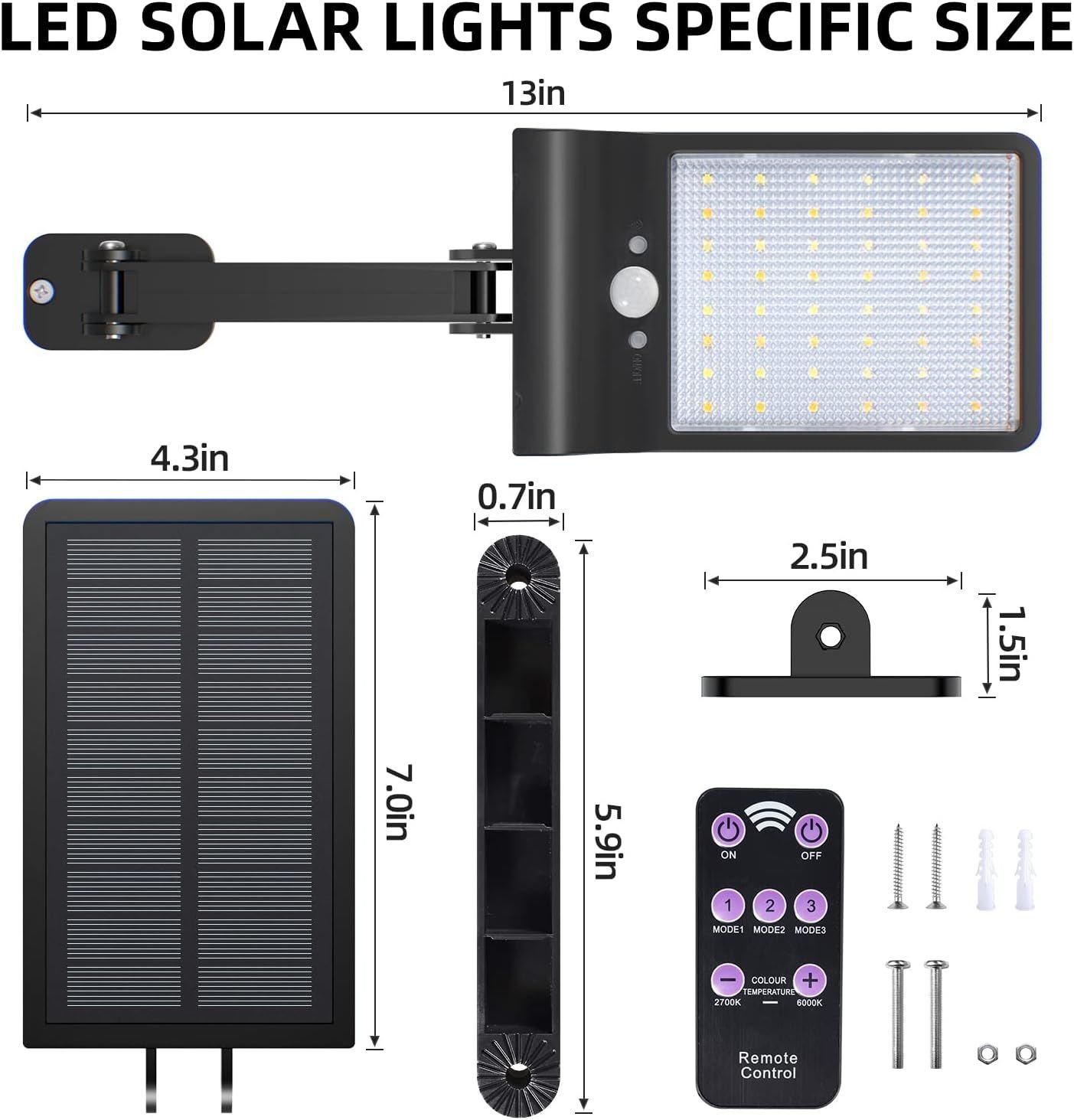 48 LED solar light outdoor works with high-quality/sensitivity photosensitive device, Within 20 feet, the included remote control can switch between 3 light modes at will. In the induction mode, PIR120°16-33FT motion sensor can be sensed, let you move freely at night.