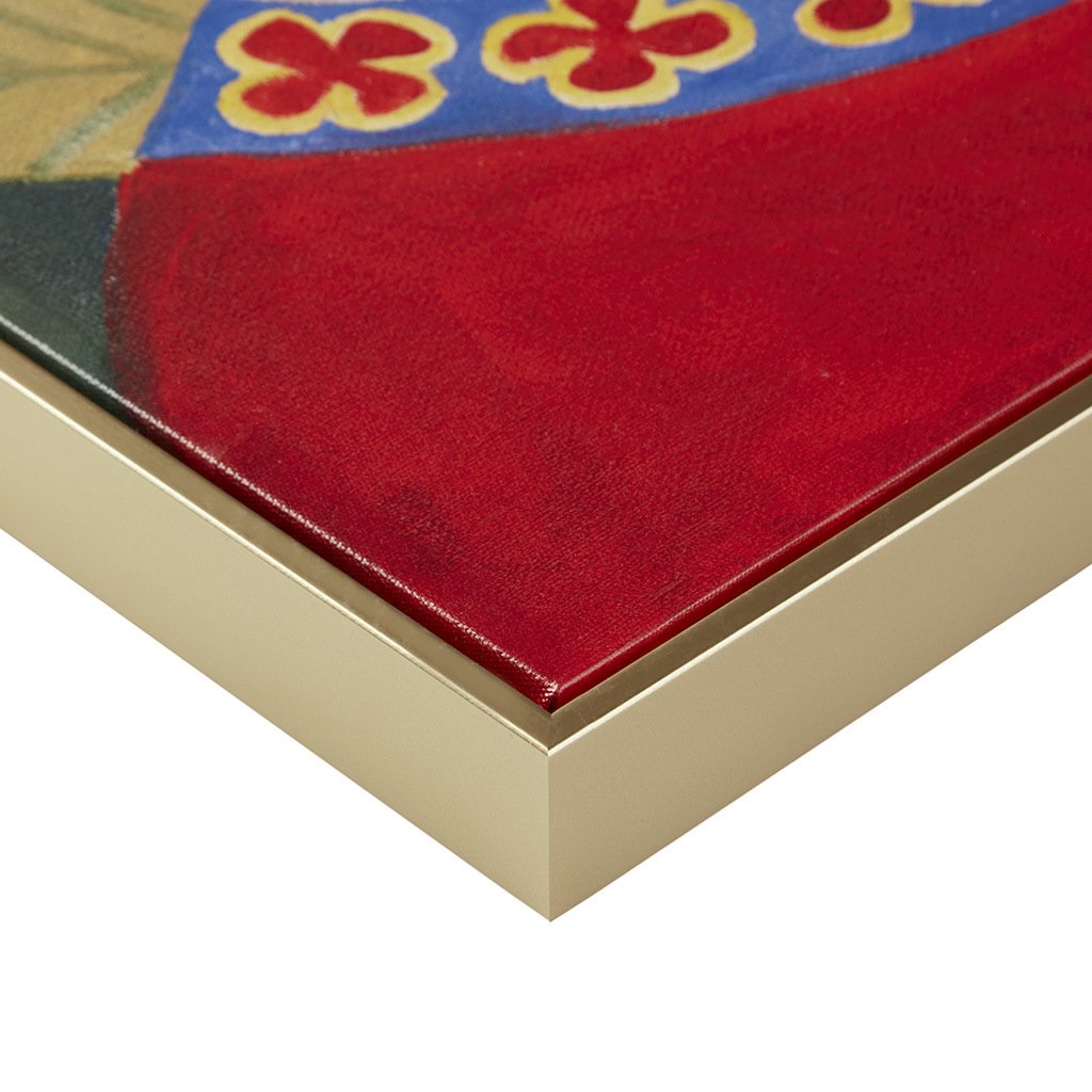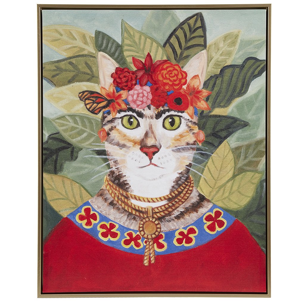 Vibrant Bohemian style cat portrait wall art in embossed golden frame