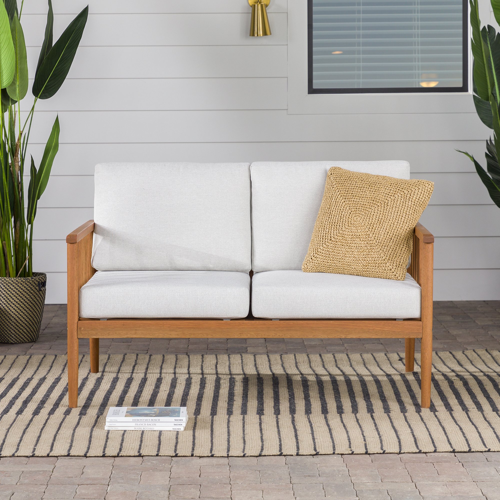 Contemporary Cushioned Eucalyptus Wood Patio Loveseat – Brown