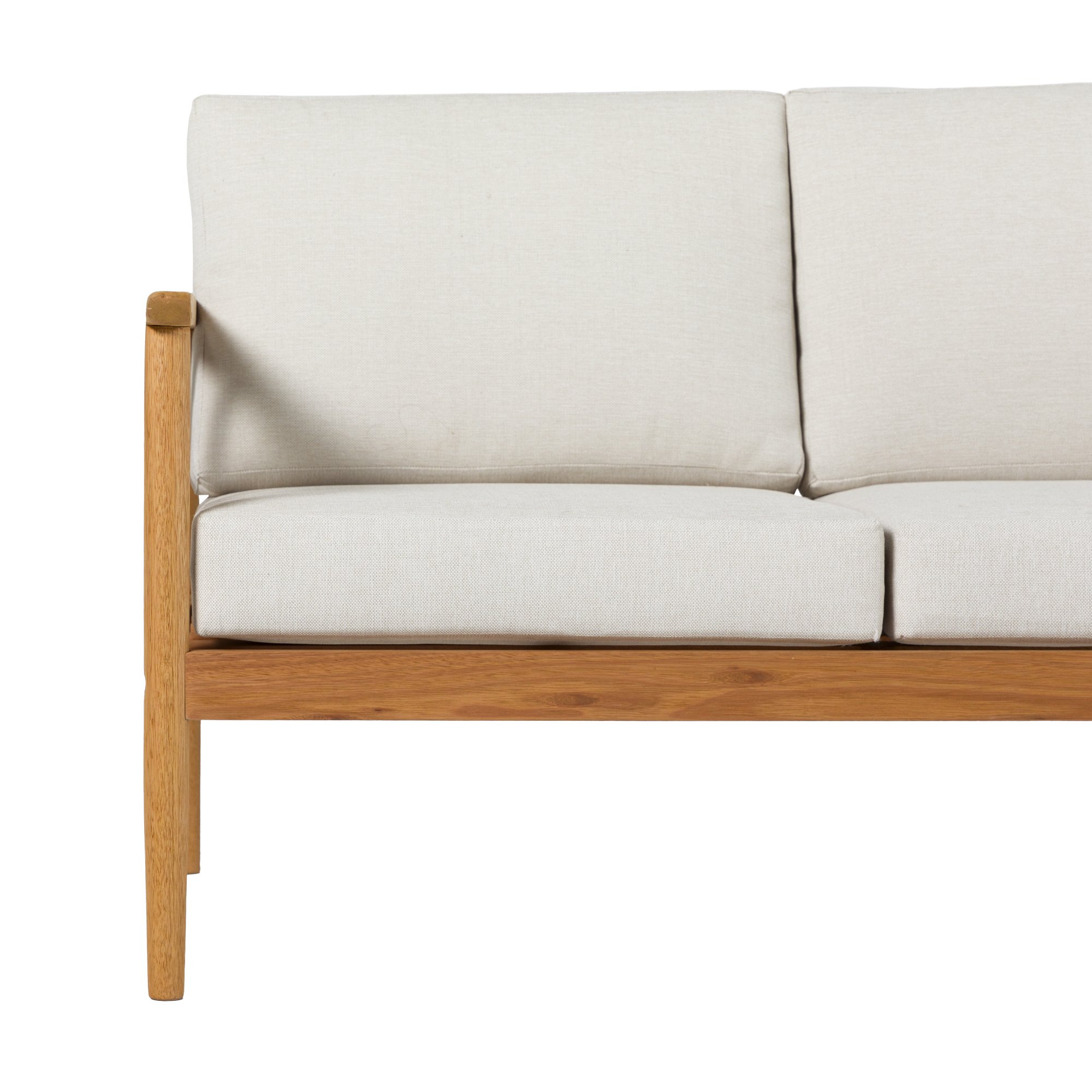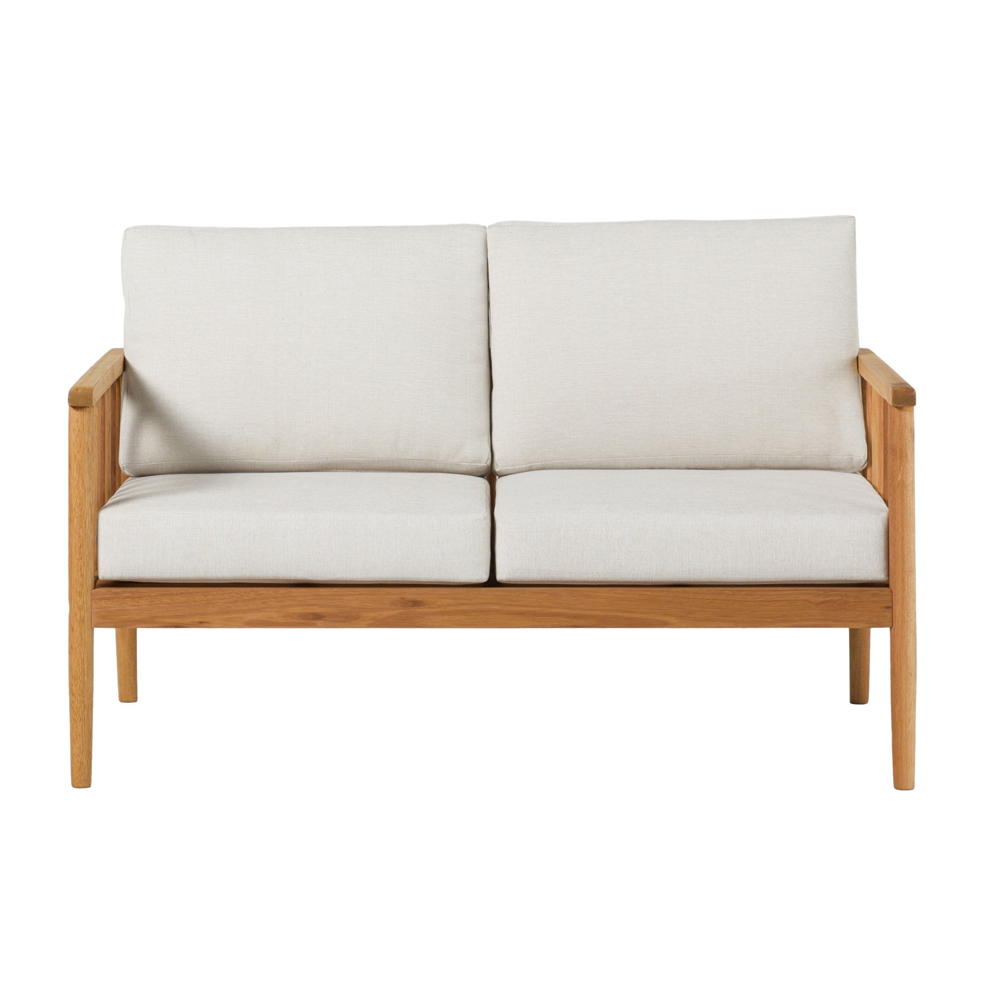 Contemporary Cushioned Eucalyptus Wood Patio Loveseat – Natural