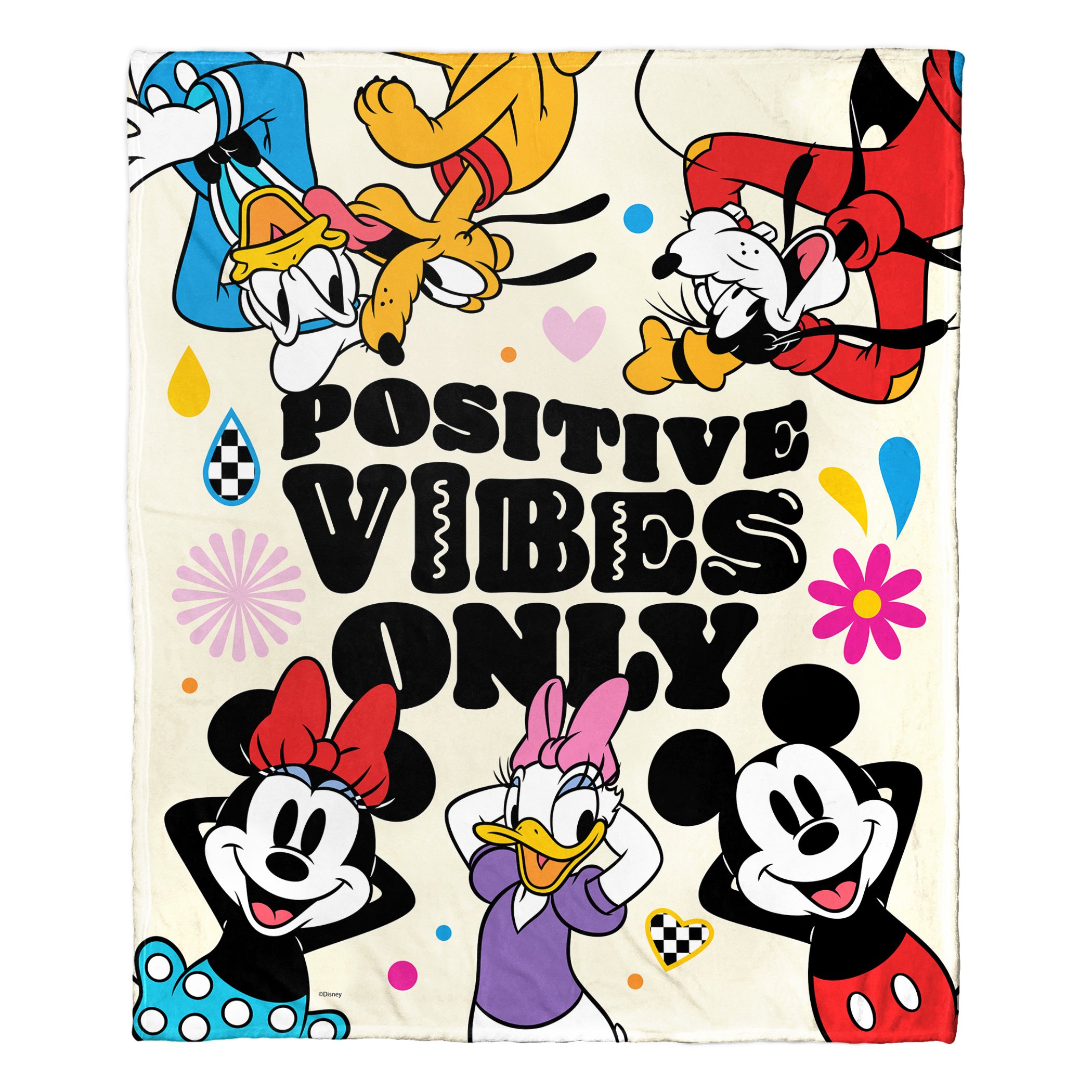 Step into a world of classic Disney enchantment with our Disney Mickey and Friends "Positive Vibes" Silk Touch Throw Blanket. Perfect for the bedroom, playroom, or any space where you want to add a touch of Disney magic. Whether it's for your little ones or the young at heart, this blanket is a gateway to a world where every day is filled with fun, laughter, and friendship