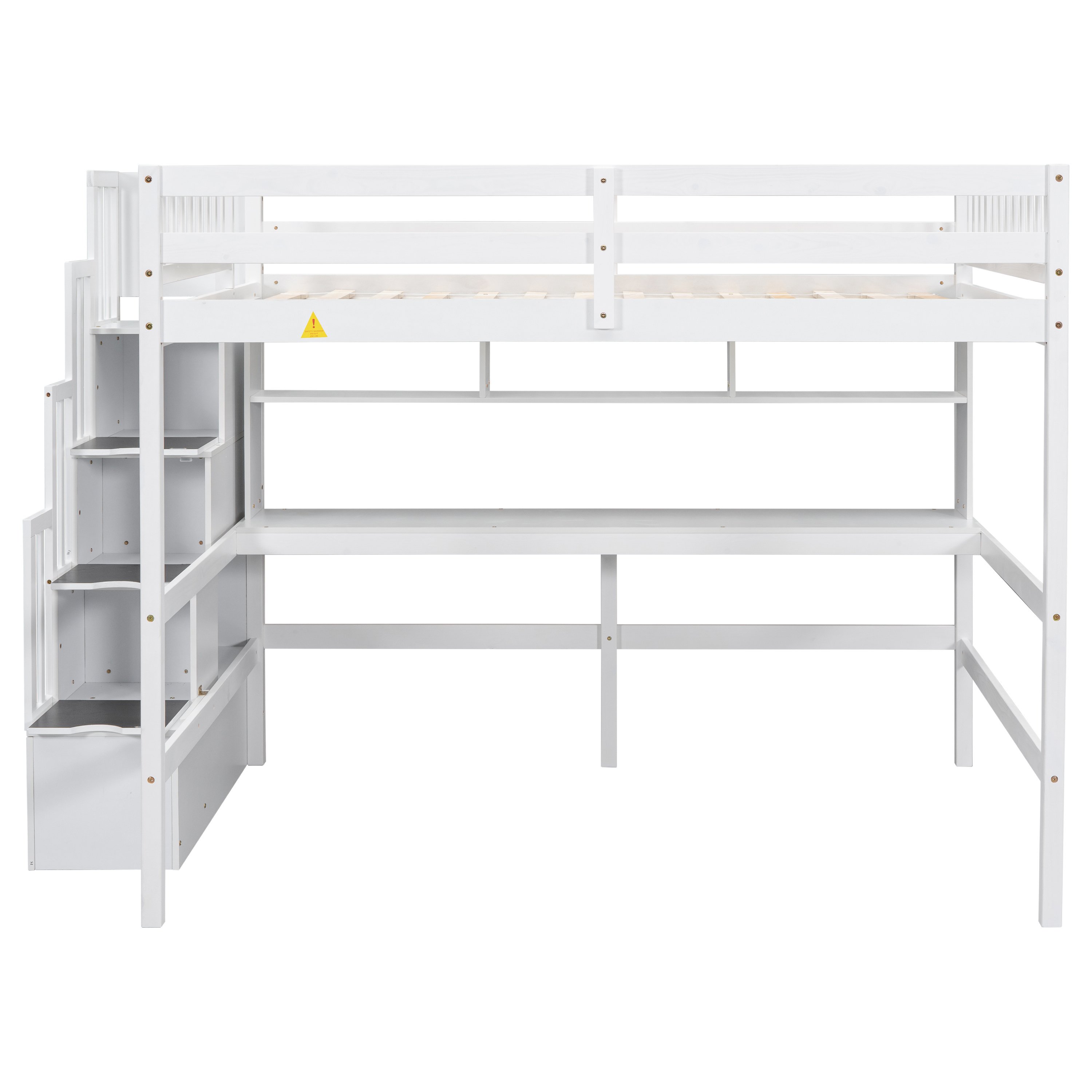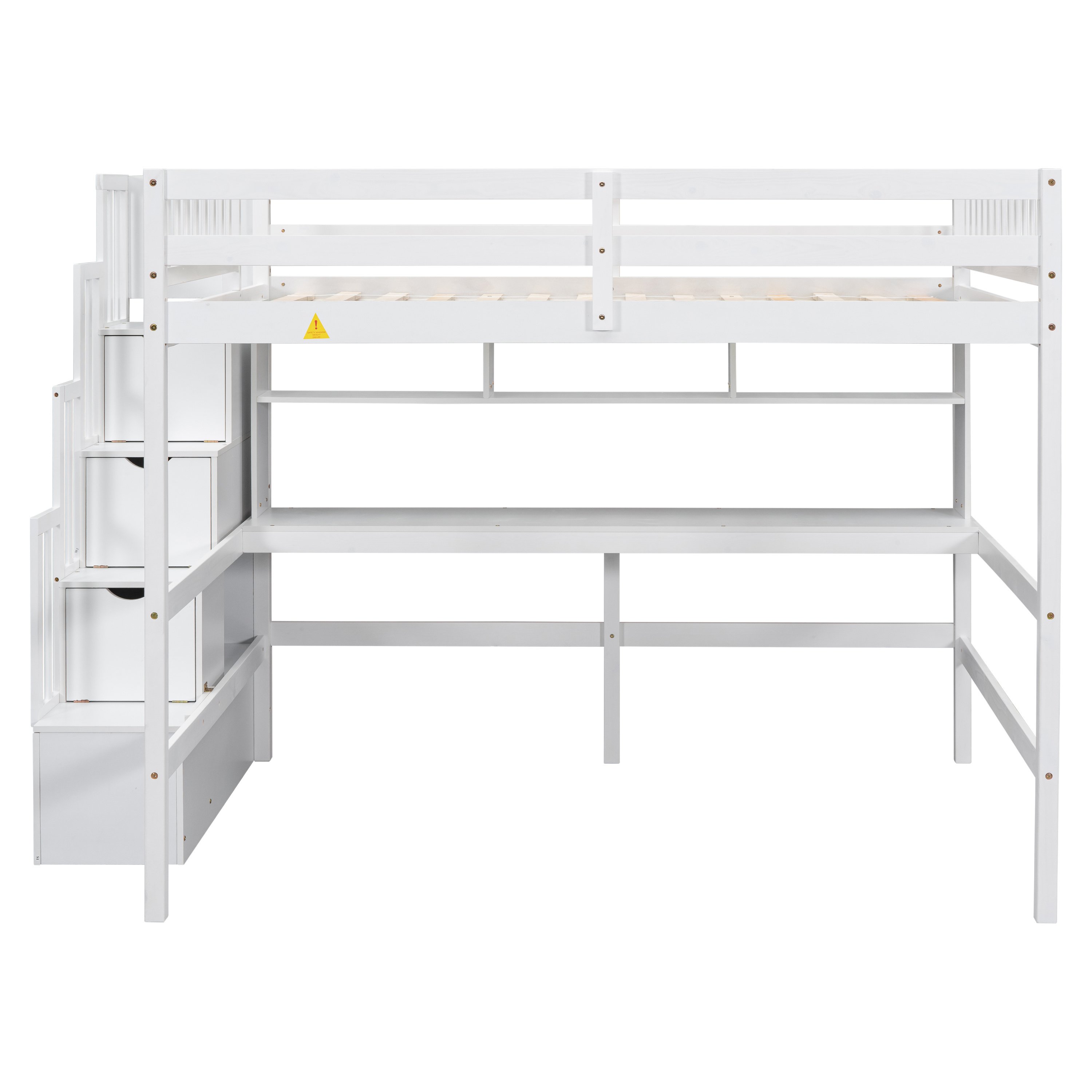 Full Size Loft Bed with Built-in Desk, Bookshelves and Storage Staircase