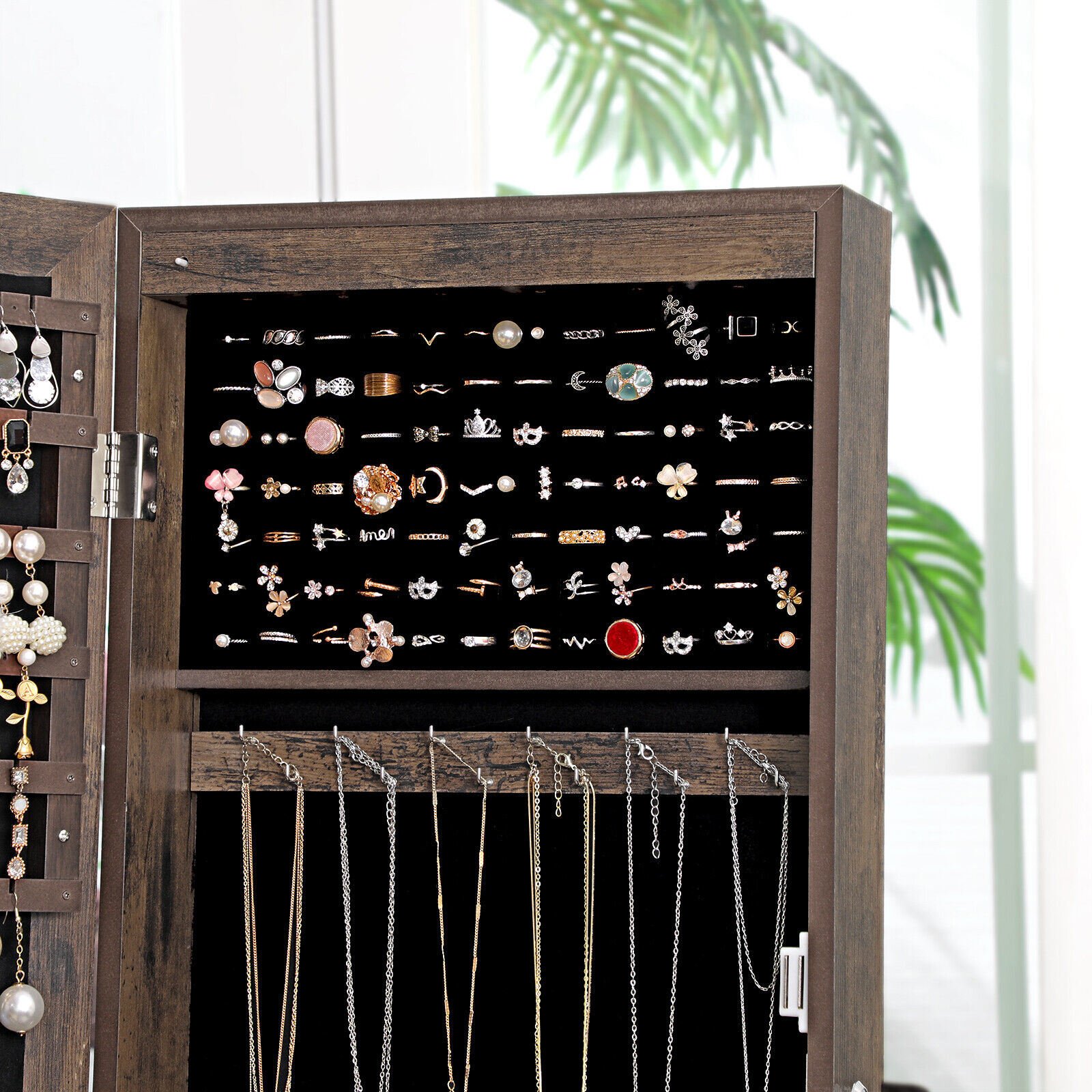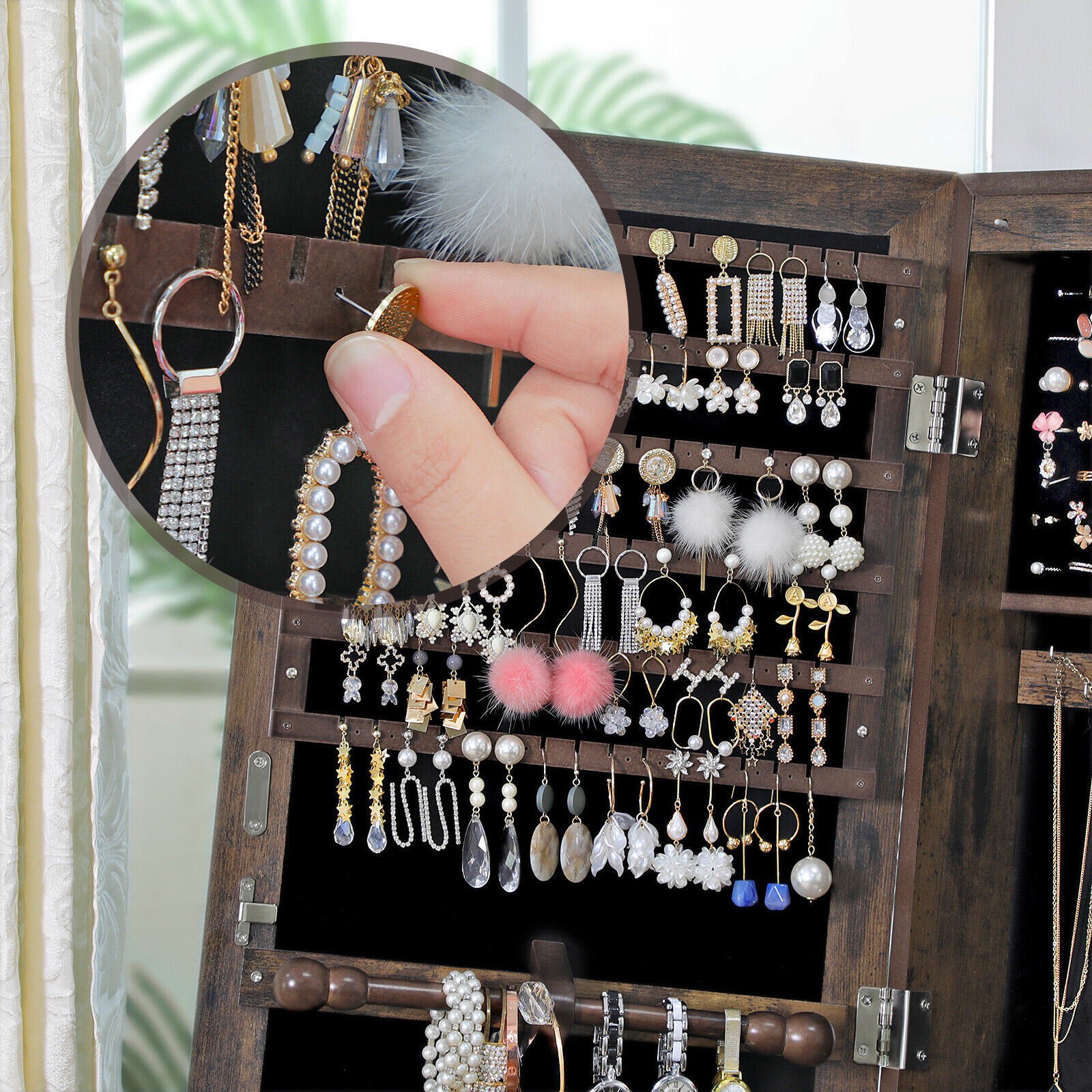 Smooth Beauty Routine: With everything well organized here; you won’t struggle to hunt down the lost earrings or untangle your necklaces in hectic mornings. Easily pick out the right jewelry from this all-in-one jewelry cabinet and check your look in the mirror before leaving. From now on; things go so right every wonderful morning.