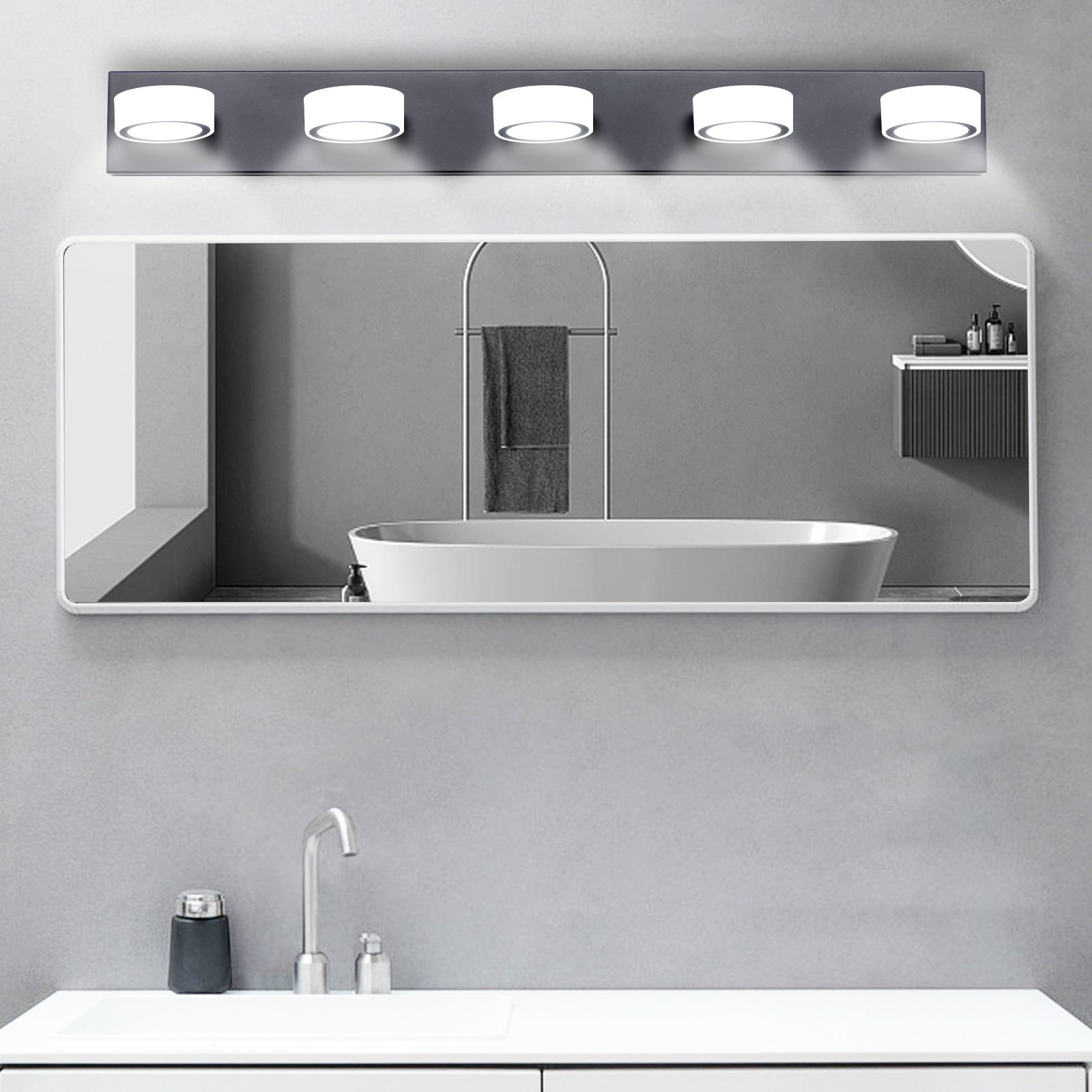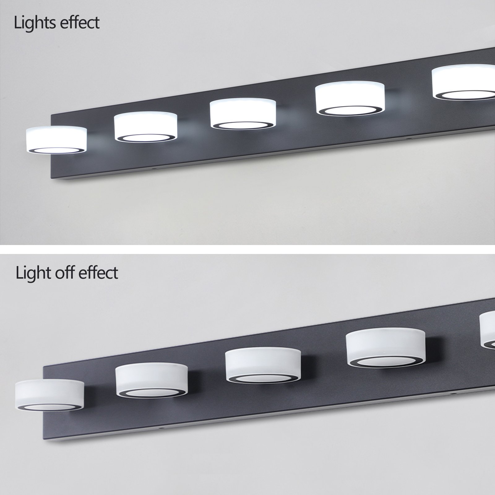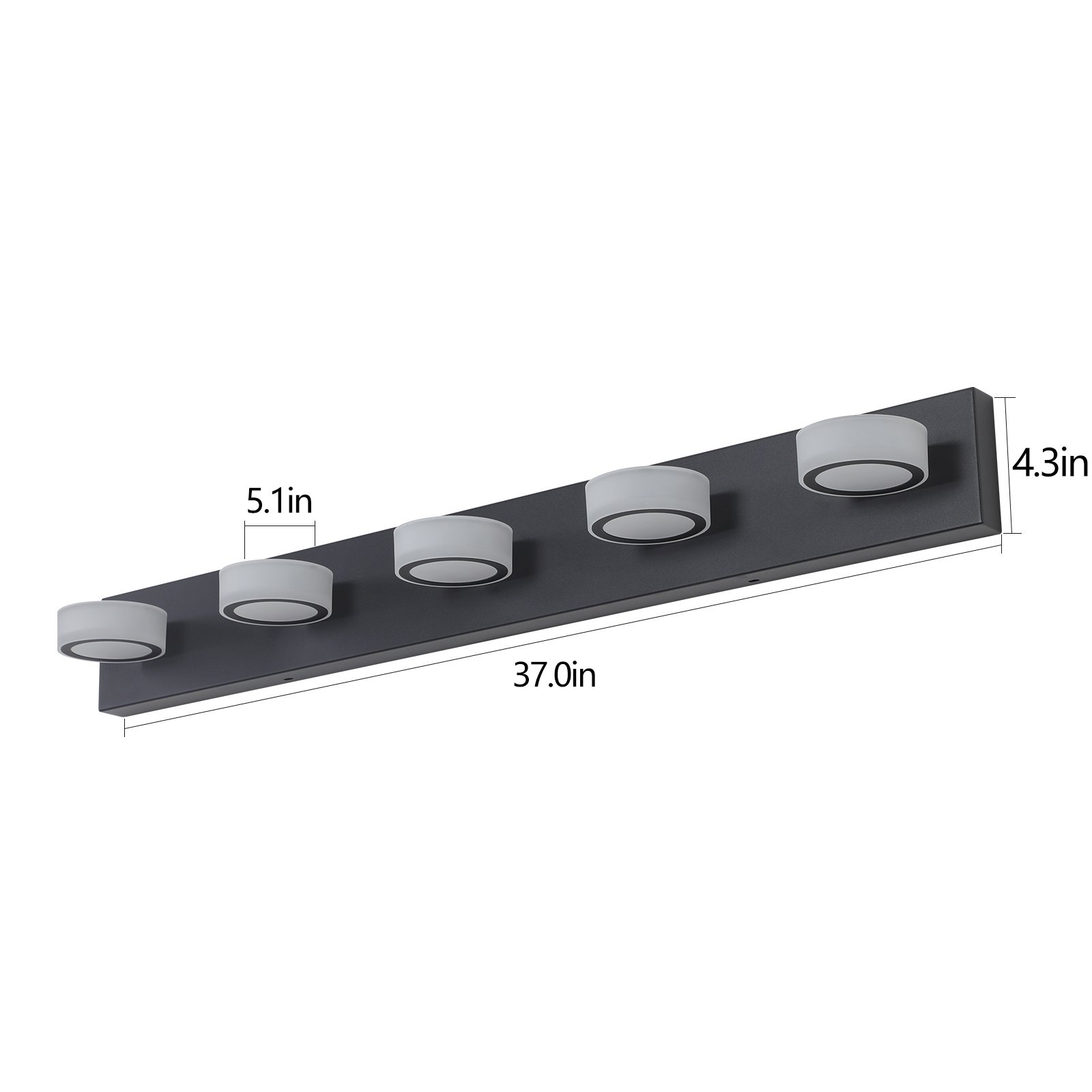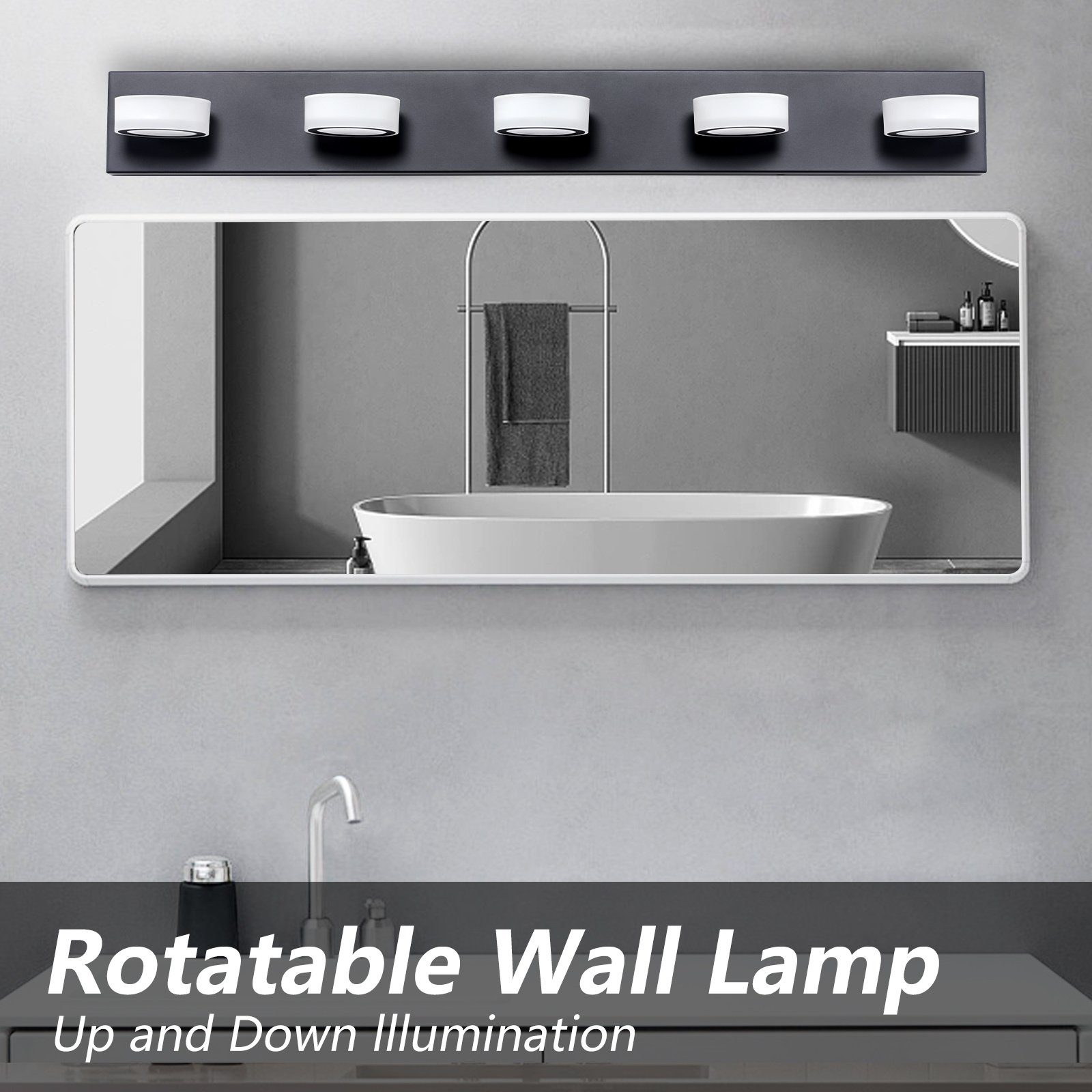 LED Modern Black 5-Light Vanity Lights Fixtures Over Mirror Bath Wall LightingMODERN & MINIMALIST DESIGN VANITY MIRROR LIGHTS : The luxurious lights for vanity mirror design is very much in line with the modern pursuit of design indoor, the bright sconce light emitted from the black bathroom light fixtures creates a beautiful and soft mirror lighting effect, the sconces wall lighting black metal part and frosted acrylic decoration design, the bathroom vanity light is suitable for your bathroom, mirror cabinet, living room and dressing room etc.with advanced plating process and sealing technology, the black vanity light can be dustproof, fog-proof, put corrosion and moisture-proof in bathroom above vanity mirror as lights for mirror .