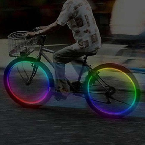 Multi LED Bike Wheel Lights that make rainbow of colors and light up your bicycles wheel as you ride the bike. It even has Flash mode that will Flash the lights make a Cool effects all done automatically.