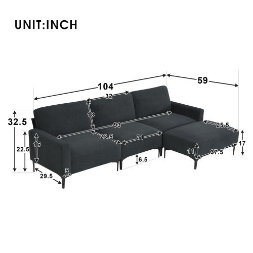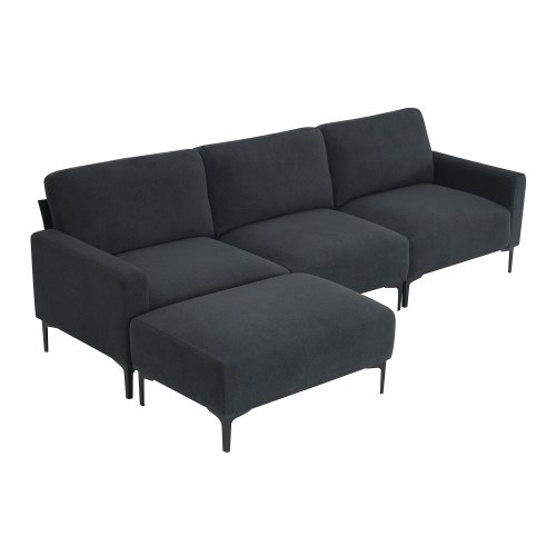 103.5*59" Modern L-shaped Sectional Sofa, 4-seat Velvet Fabric Couch Set with Convertible Ottoman,Freely Combinable Sofa for Living Room, Apartment, O