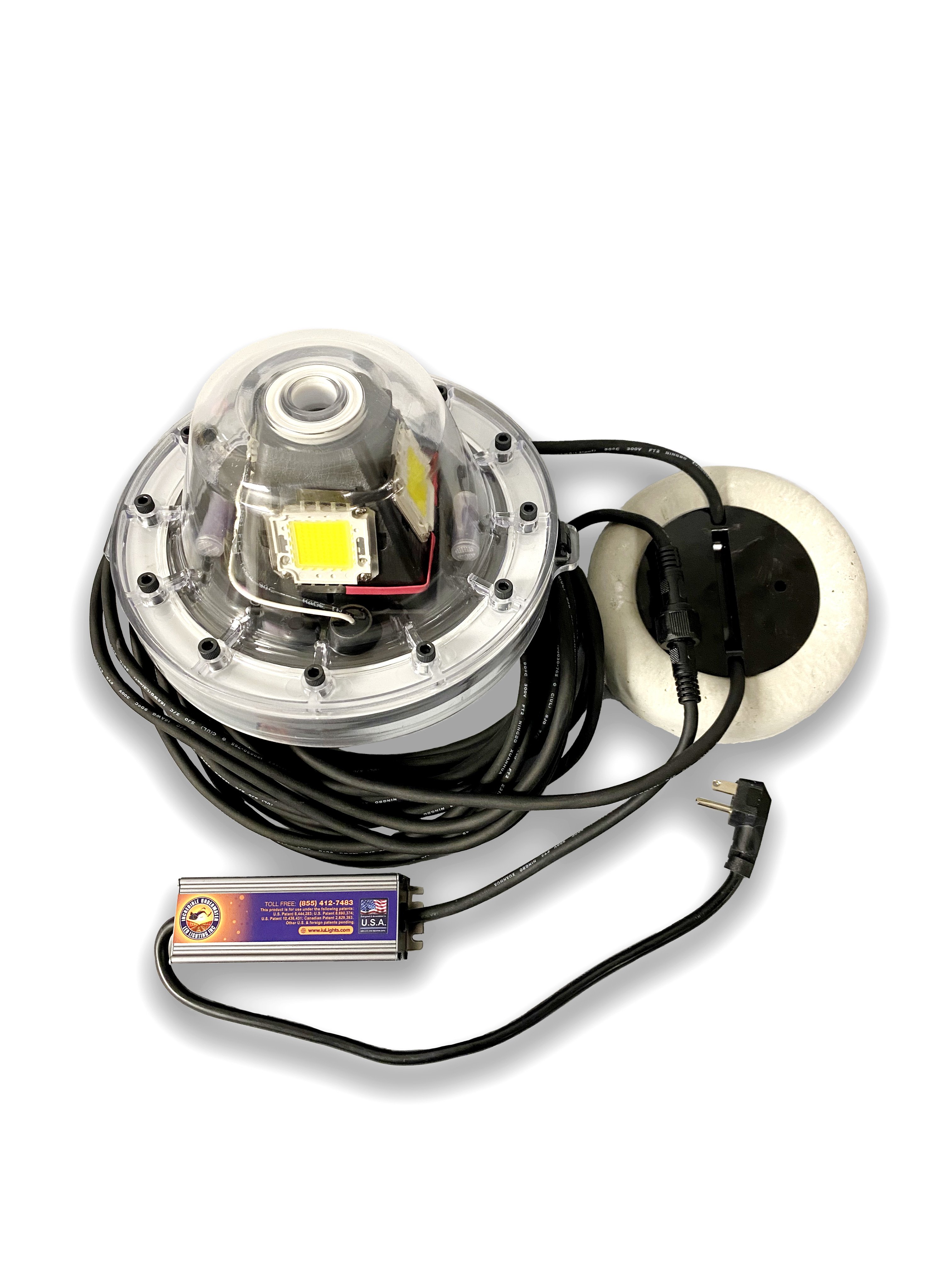 Our Apollo LED Underwater Lighting System is by far the most technologically advanced LED lighting system available on the market. With the addition of the Apollo LED lighting system to your fresh or saltwater aquatic environment; spectators will be amazed at the marine life that is attracted to the (up to) 40-ft diameter of light emitted. Due to our Ultra High Intensity LED Light circuitry combined with our patented internal water cooling system; the Apollo underwater light is the brightest; most energy-efficient underwater light in its class.