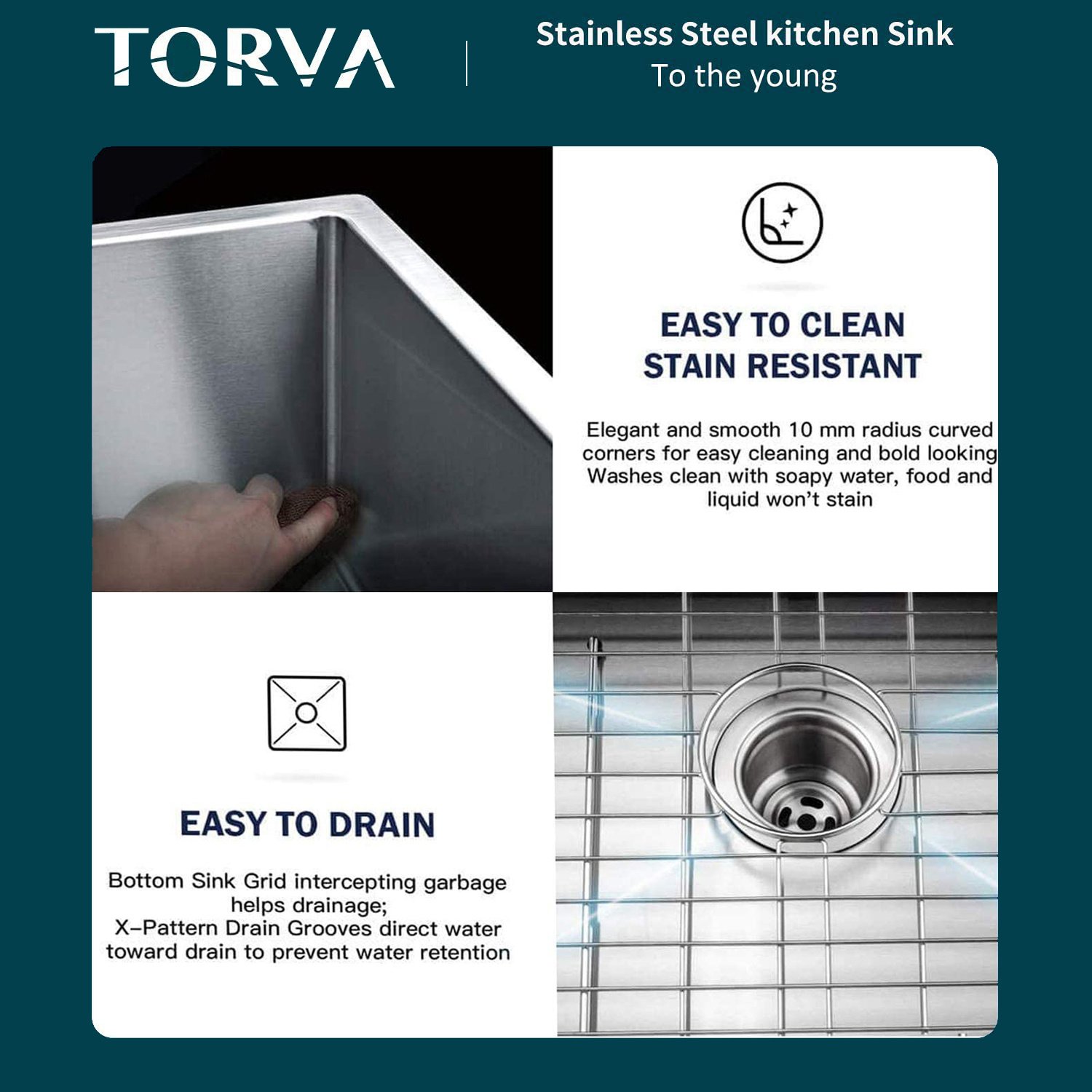 1.Constructed with premium 16-gauge thick grade SUS304 stainless steel for durability and strength.Undermount installation gives you counter space, seamless transition and easy-to-clean corners.