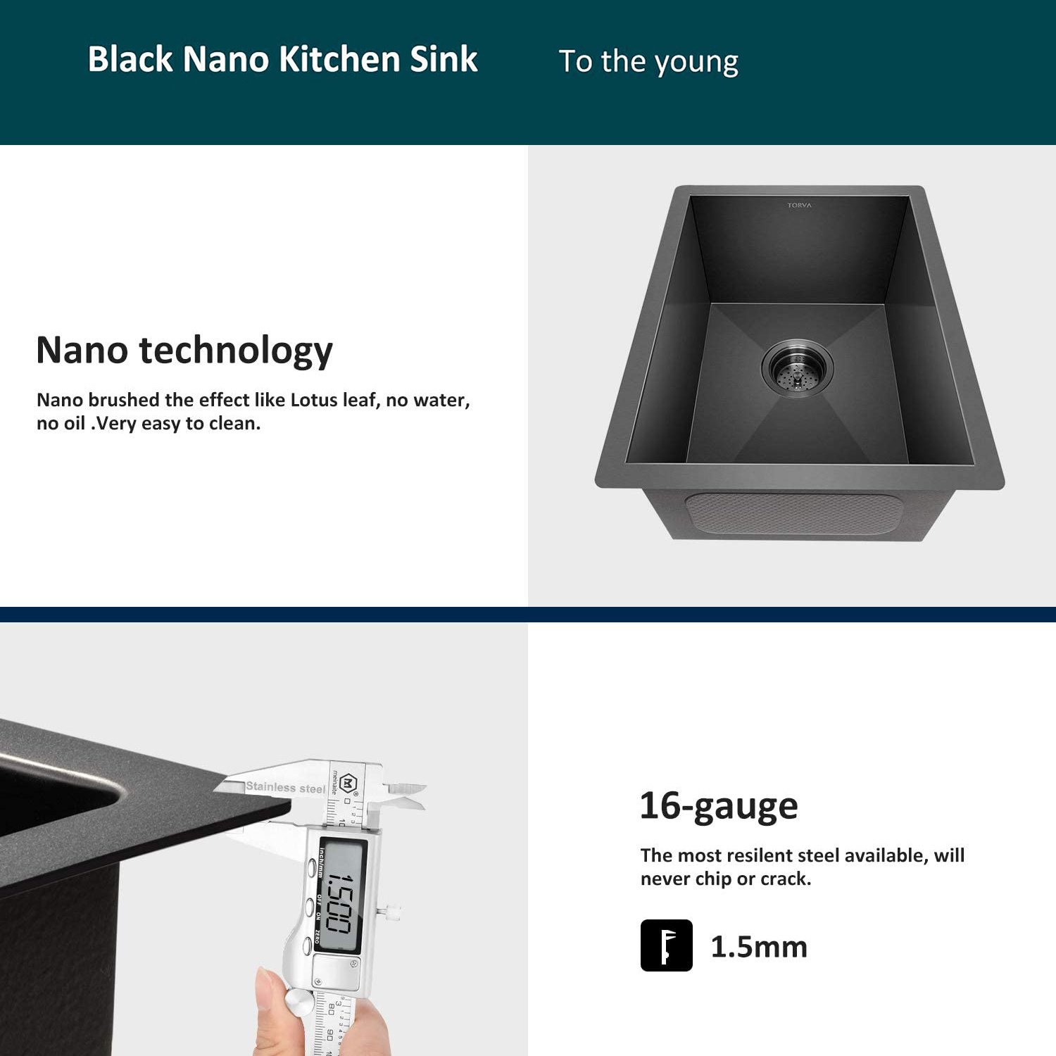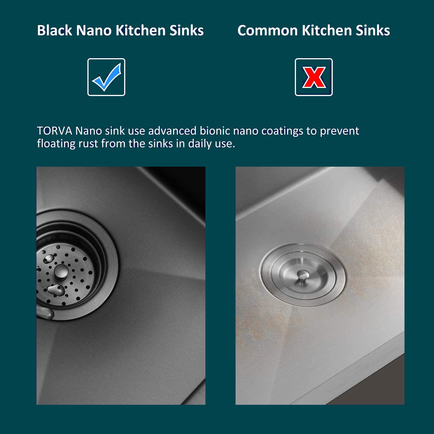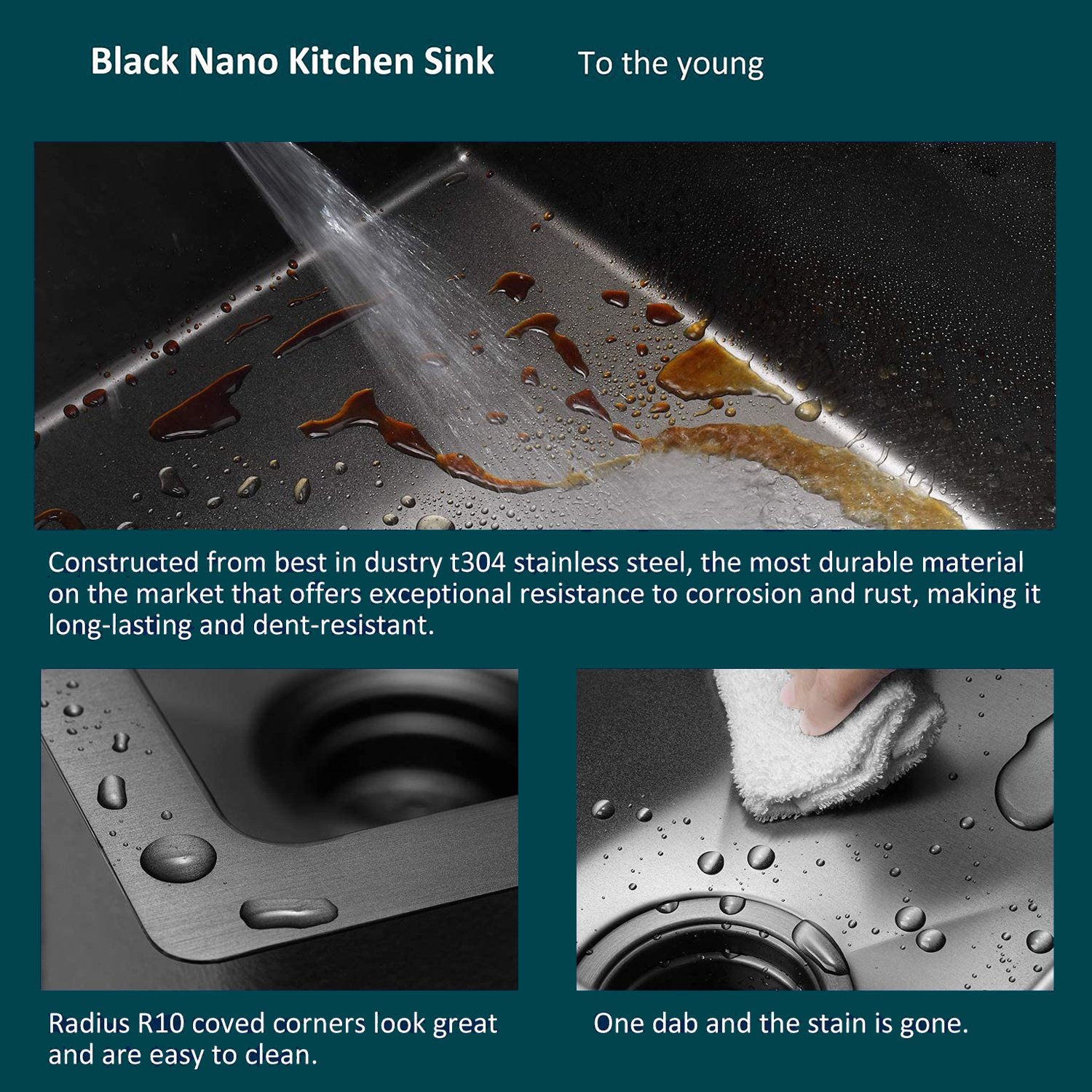 1.Constructed with premium 16-gauge thick grade SUS304 stainless steel for durability and strength.Undermount installation gives you counter space, seamless transition and easy-to-clean corners.