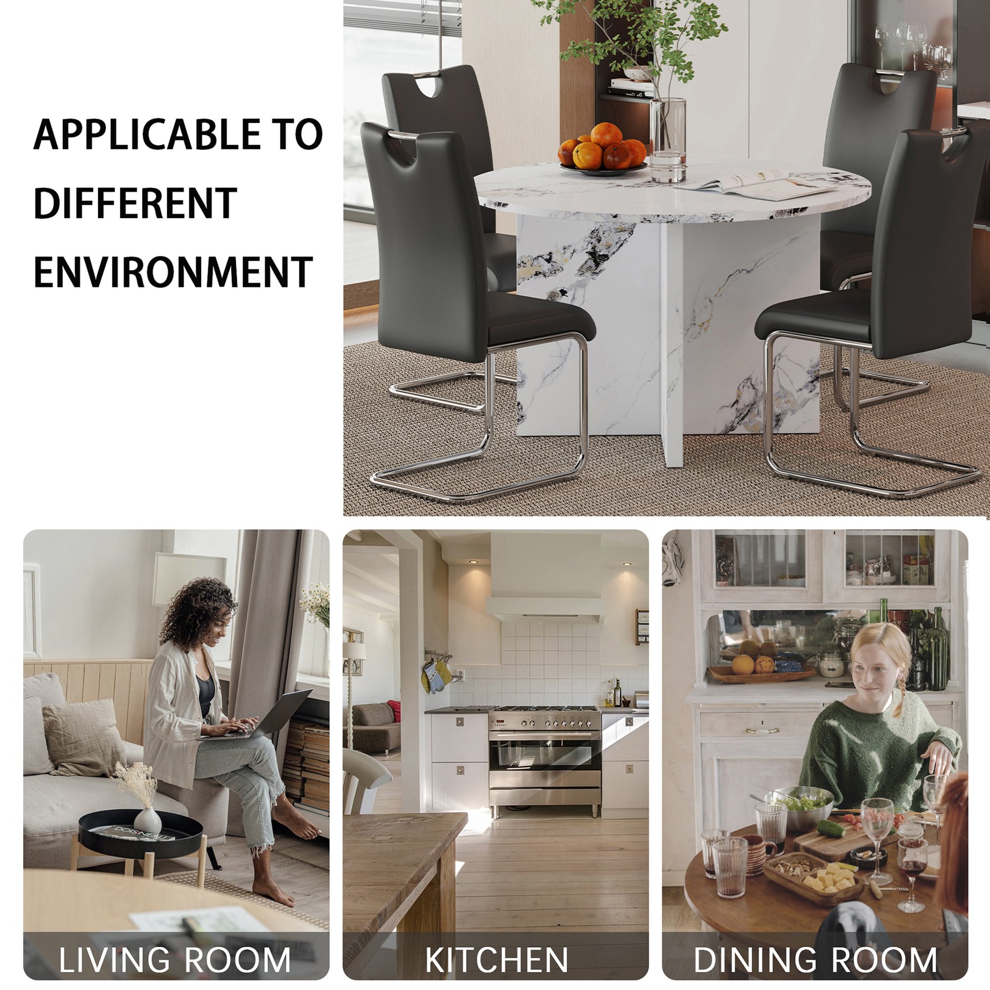 Stable and SturdyThis modern dining chair are well constructed with premium steel legs, available for continuous durable usage.DetailsOverall Product DimensionDining table: 47 x 47 x 29.3 inches, 101.16LBSDining Chair: 19.3 x 16.9 x 39.4 inches, 13.94LBS/pieceWeight CapacityDining Table: 300lbs Dining Chair: 250lbs/piecePieces Included1 table+ 4 chairsMaterialTabletop: MDFChairtop: PU+plywood+foamChair Legs: MetalPackage Number3Assembly Required30 minAdditional Tools RequiredAll tools includedCountry of OriginChinaMaintenance & NoticeAbout FinishLiquids should be immediately blotted with a damp cloth. Do not use surface cleaners that could remove the finish.About HardwareHardware may loosen over time; periodically check to make sure all connections are tight.About FastenersDon't over-tighten fasteners, as this may cause distortion or breakage.About ColorReal Product's Color may be a little different from the image due to the lighting or monitor's display.About SizeManual measurement has been used, there may be some reasonable error.