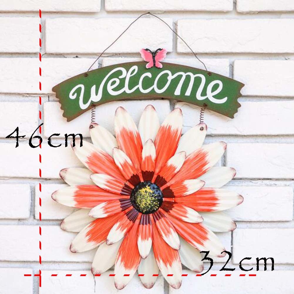 Home > Red African Daisy Iron Wall Art Decor Door Welcome Plaque Sign Garden Villa Metal Door Hanging Ornament