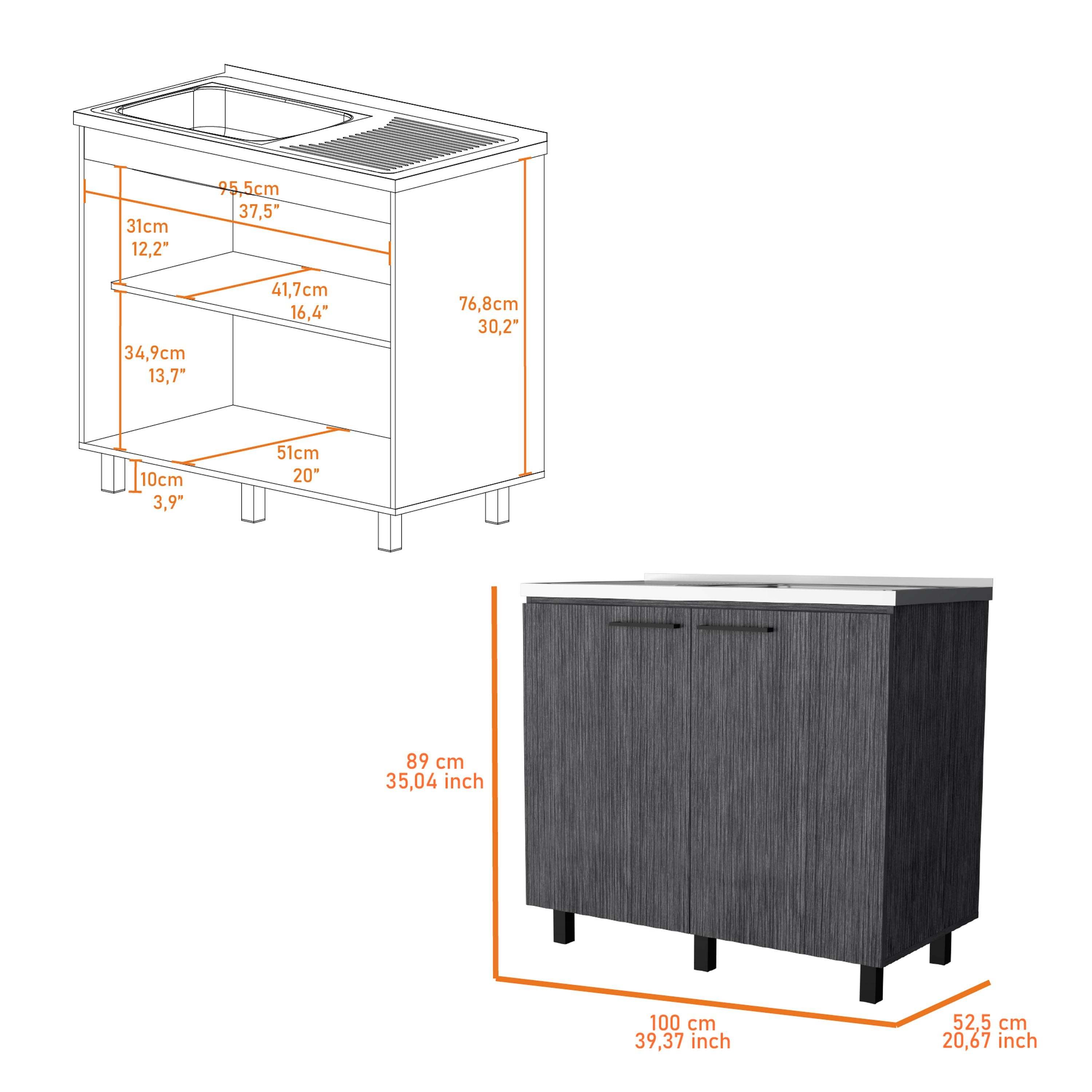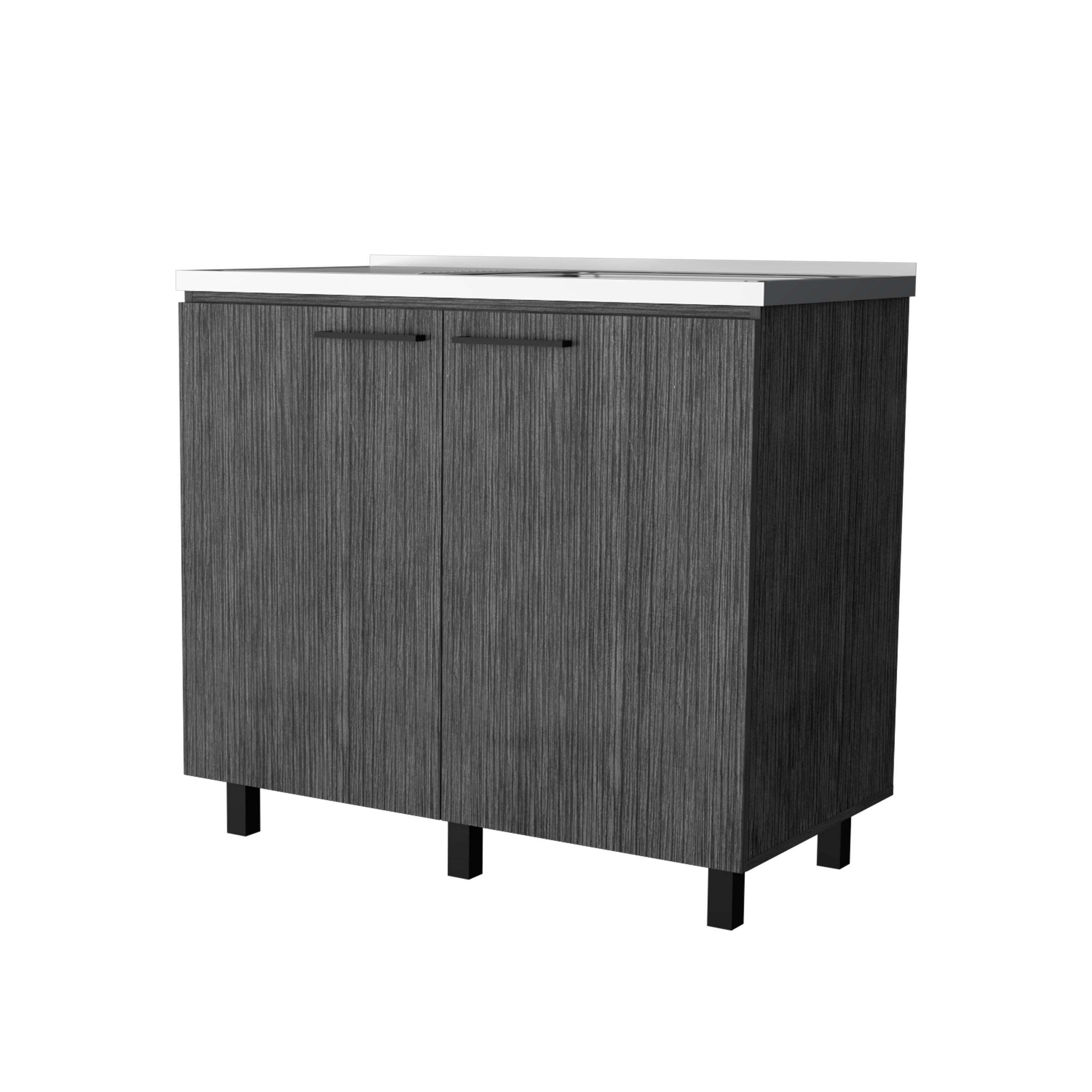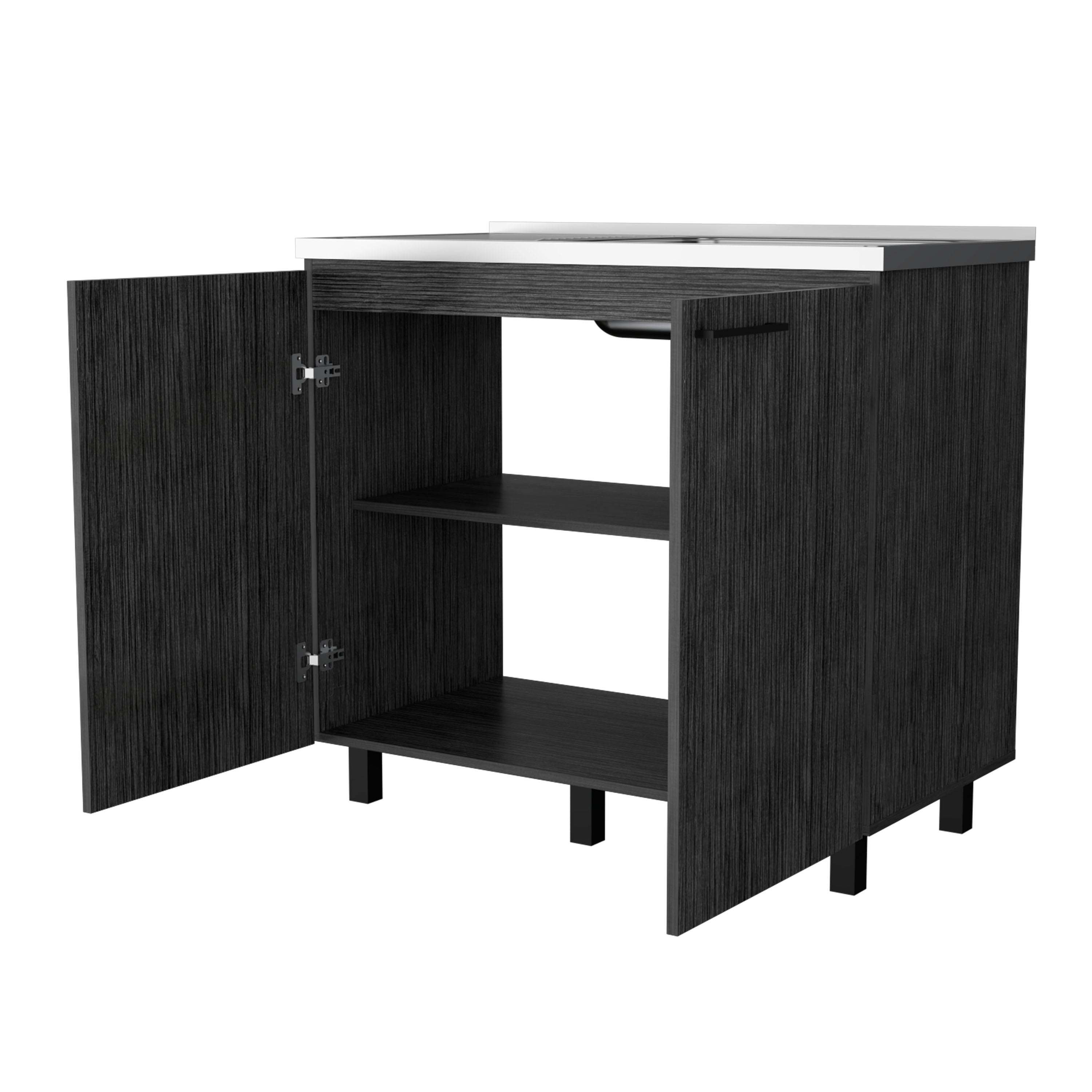 Upgrade your kitchen with 2 utility sink and cabinet, offering extra counter space and durability that lasts for years. Featuring a large countertop area made of exclusive heavy-duty aluminum, stylish slender legs for a unique touch, two large doors, and a shelf for internal storage, this cabinet is perfect for renovations or extra storage needs.