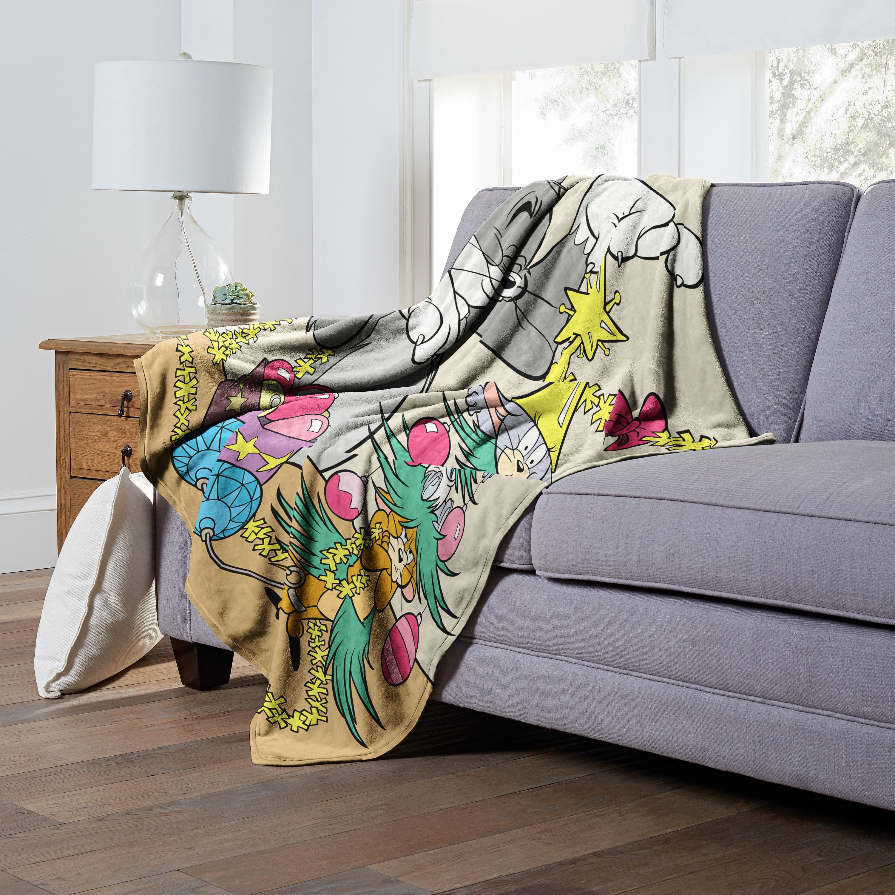 Snuggle up Holiday style with this fun Warner Bros. Tom and Jerry "Mouse Tree" Silk Touch Throw Blanket. Made from 100% polyester, this blanket features a soft and warm fabric that's perfect for keeping you cozy and comfortable. The design of this throw blanket makes it a fun and colorful addition to any bedroom or playroom.